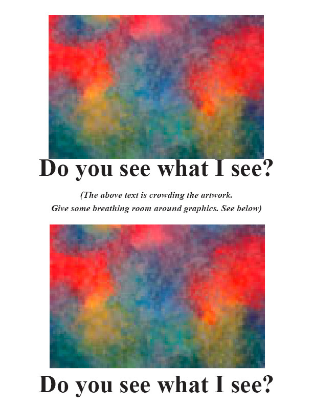In other words, don’t squish everything together and watch out for that clutter.